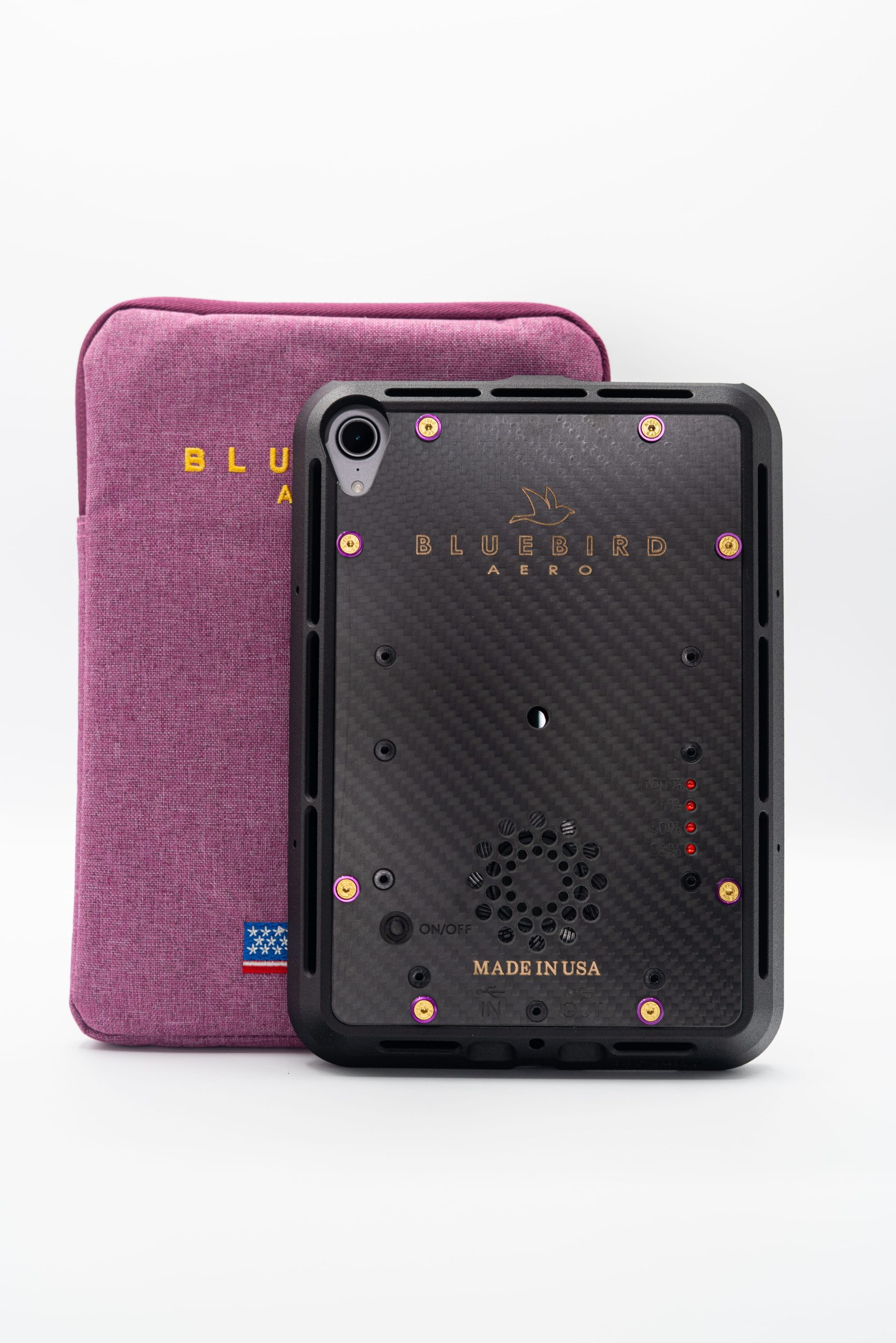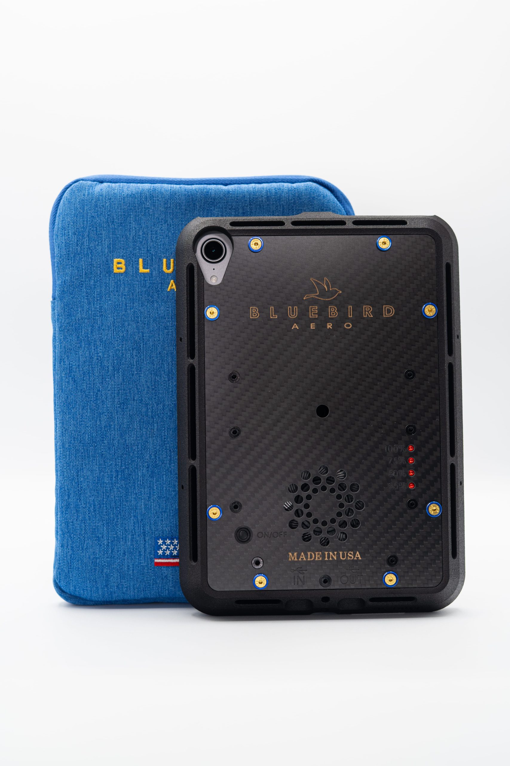 In addition to cooling and power, the Bluebird Aero Pilot Case offers robust protection, shielding your iPad from impacts and everyday wear. When the internal battery needs recharging, simply connect a USB-C cable to the IN port.